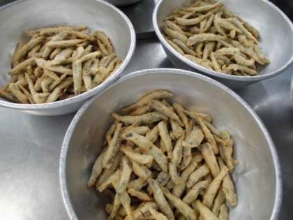いわしのてんぷらは、砂糖・みりん・米酢・こいくちしょうゆで作ったタレをかけています。甘酸っぱいタレで、ごはんがすすむ味つけでした。