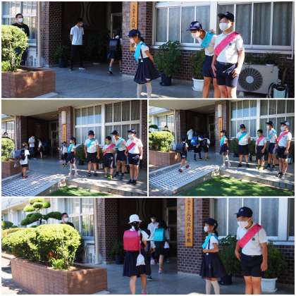 計画委員の児童を中心に、朝のあいさつ運動に取り組んでいます。