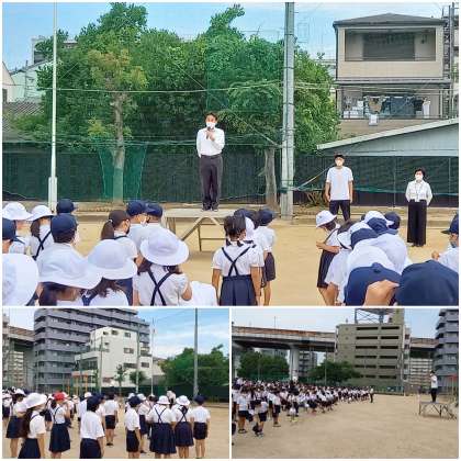 土曜授業「引き渡し訓練」の振り返り、災害等が起こった際に、安全に身を守れるように日頃の訓練が大切だということを、校長先生から話を聞きました。