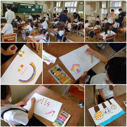 子ども達は、豊かな想像力を発揮して、暗い穴の先の世界を表現しています。