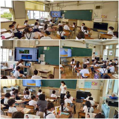 先生と一緒に、音読しながら何が書かれているのか確認しています。