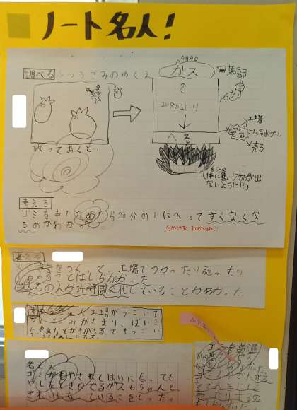 学習したことを振り返り、自分の考えを書くことができています。