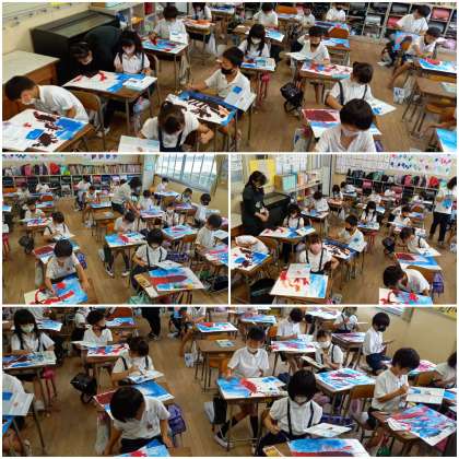 絵の具で、水を描くことで「ザリガニ」が生き生きしだしました。