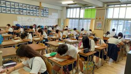 今日は、朝からテストに取り組んでいます。