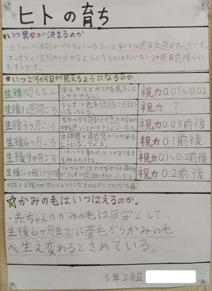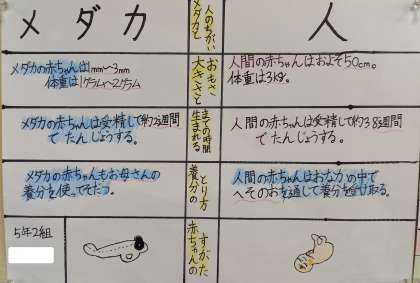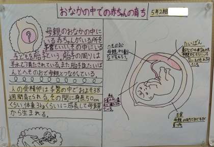 5年生が、理科で「いのちのつながり」について学習したことをポスターにまとめています。
