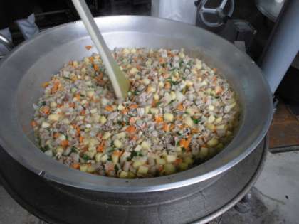豚肉とじゃがいもの煮ものは、豚肉・じゃがいも・つなこんにゃく・たまねぎ・にんじん・さんどまめを使用した煮もので、じゃがいもがホクホクしていました〜。
