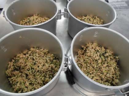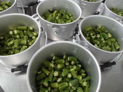 オクラの梅風味は、梅肉を使用した調味液を、焼き物機で蒸したオクラにかけてあえています。梅の風味がほんのりしていて、児童は食べやすいようでした。