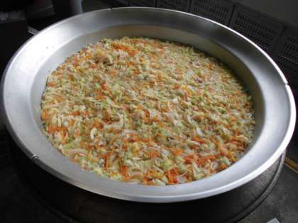 すまし汁は、鶏肉・キャベツ・たまねぎ・にんじんを使用しています。