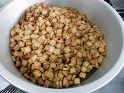 あつあげのしょうがじょうゆかけは、焼き物機で蒸し焼きにしたあつあげに、しょうが汁・砂糖・こいくちしょうゆで作ったタレをかけています。