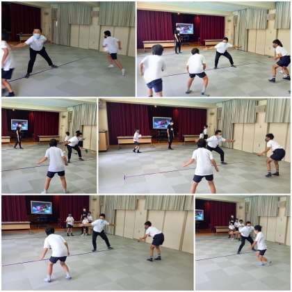 全身を使ったゲームを通して、英単語のフレーズに親しんでいます。