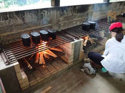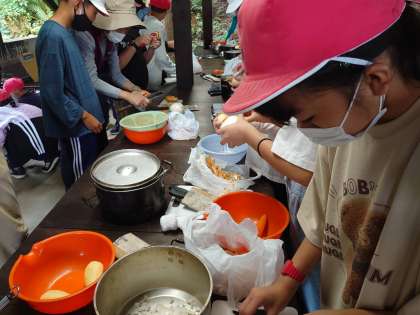 友だちと協力しての、調理は貴重な体験です。
