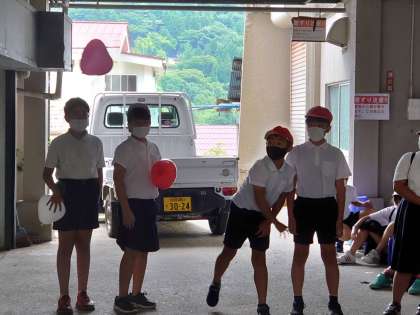 第4種目は、風船を使った砲丸投げです。