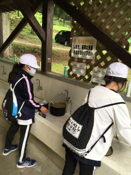 おいしいカレーをお腹いっぱい食べた後は、みんなで協力して片付けです。