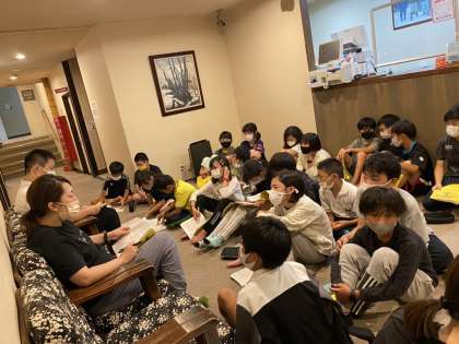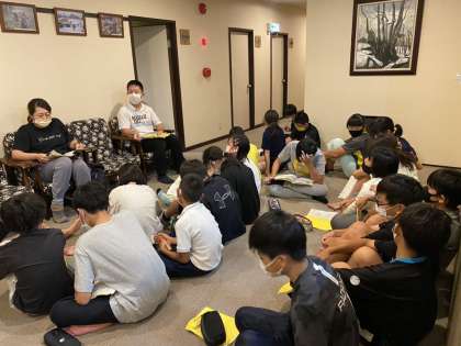 今日の振り返りと明日の活動の確認をしています。