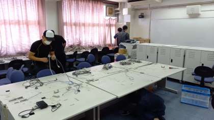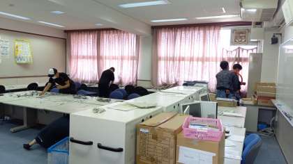 パソコンルームのデスクトップ型パソコンの撤去作業がありました。