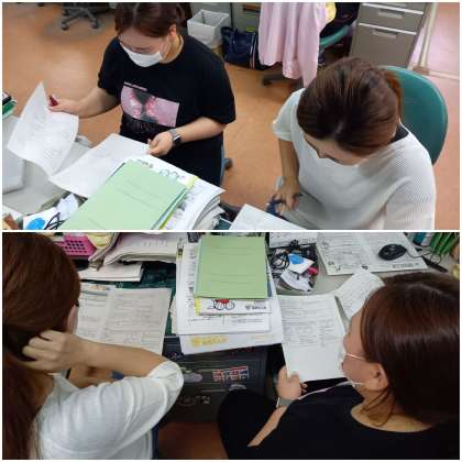 中堅教員が若手教員に教材研究の方法を研修したり、オンラインで研修に参加したりしています。