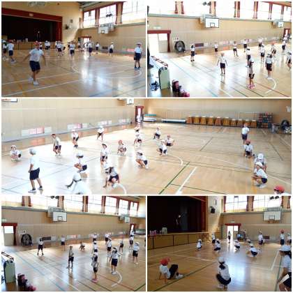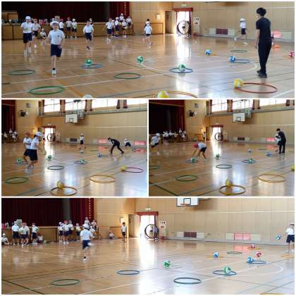 4年生の子ども達が、「シナプソロジー」の運動に取り組んでいます。