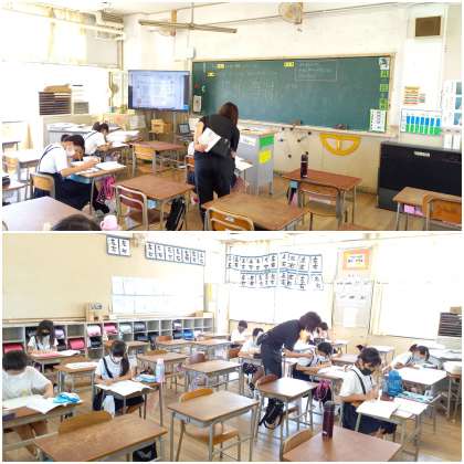 4年生は、1学級を2分割して算数科の学習に取り組んでいます。