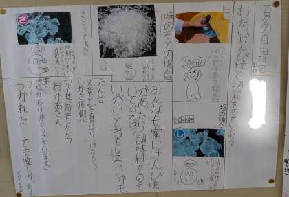 子ども達が取り組んだ、夏休みの自由課題が各学級に展示されています。
