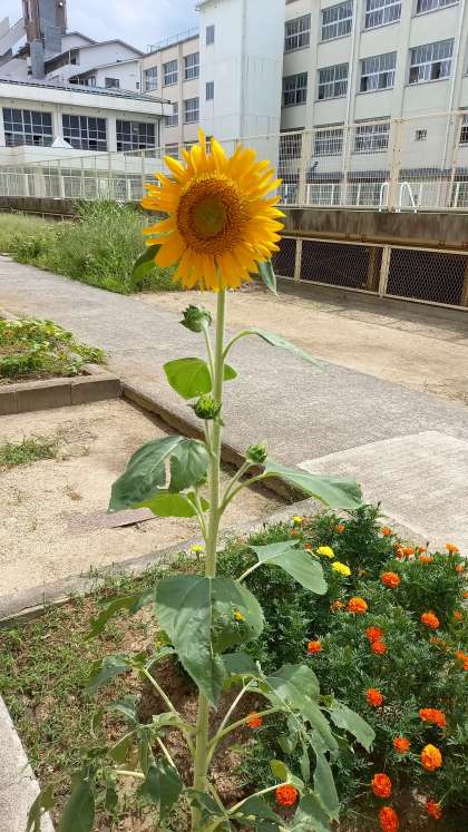 学習園に、大きく育った「ヒマワリ」が咲いています。