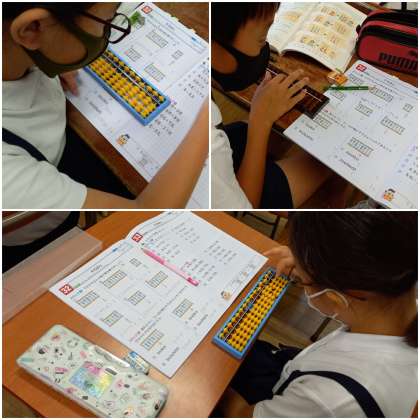 3年生で学習したことも活用し、計算問題に取り組んでいます。