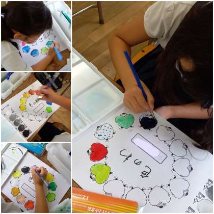 子ども達は、水の量で色の濃淡が変わることを楽しんでいます。