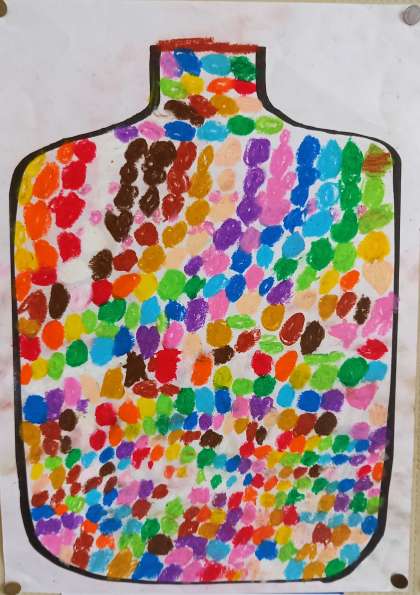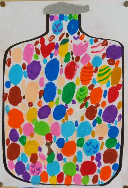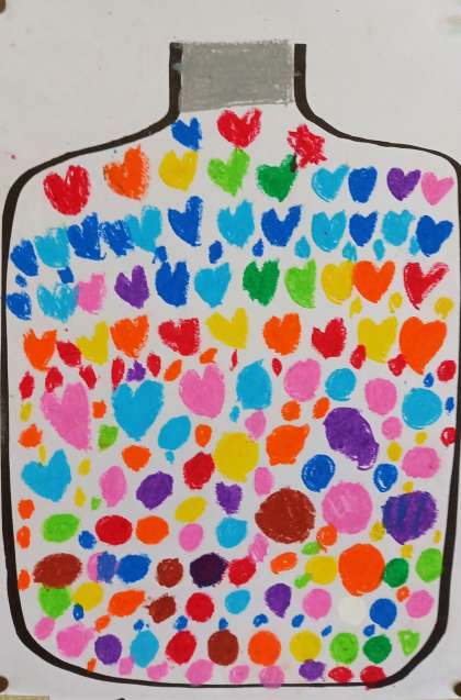 ガラスの瓶に、カラフルな飴がたくさん入っています。