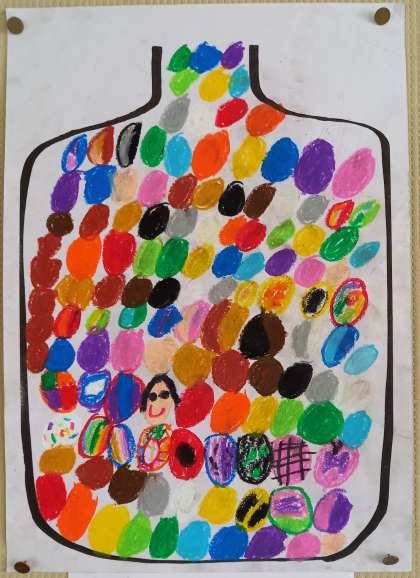 ガラスの瓶に、カラフルな飴がたくさん入っています。