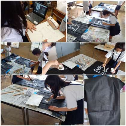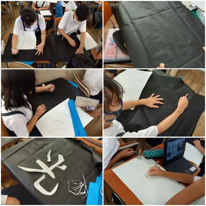 自分で選んだ文字を、はっぴに書いています。