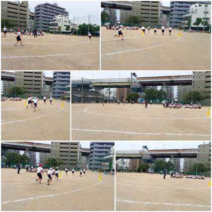 6年生が、リレーの要「バトンパス」の練習をしています。