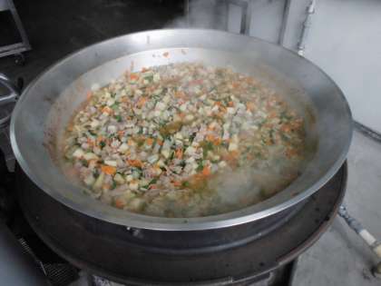 豚肉とじゃがいもの煮ものは、豚肉・じゃがいも・たまねぎ・にんじん・つなこんにゃく・さんどまめを使用した煮もので、じゃがいもがホクホクしていましたよ〜。