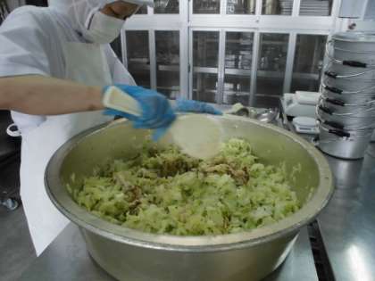 キャベツの梅風味は、ゆでたキャベツに梅肉等を使用した調味液をかけ、あえています。