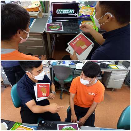 学級担任とC−NETが、外国語の授業の打ち合わせを行っています。