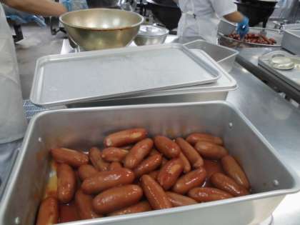 フランクフルトのケチャップソースは、ゆでたフランクフルトにケチャップ・デミグラスソース等で作ったソースをかけています。