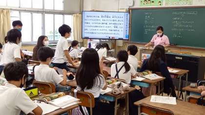 2組は、国語科で映像を見ながら、より良い話し合いのし方について学習しています。