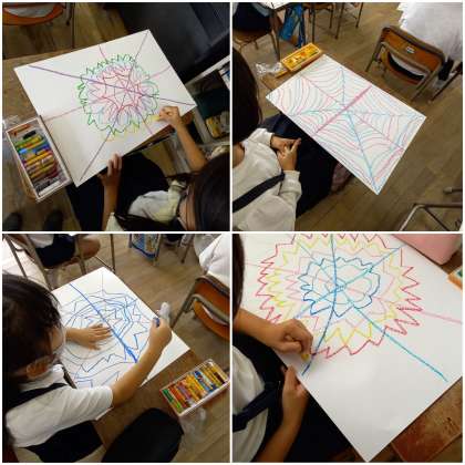 今日は、パスを使って蜘蛛の糸を描いています。