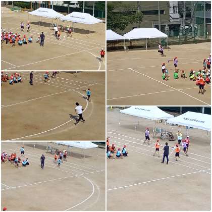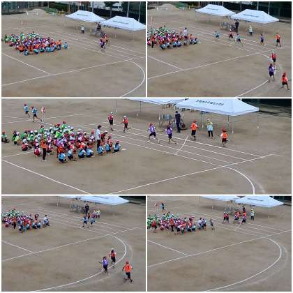 担任や教育実習生も一緒に走り、リズミカルにバトンパスができるよう声をかけ合っています。
