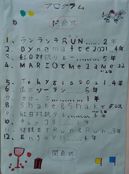 しかし、コロナに負けず、正々堂々全力であきらめず、最後まで楽しんで思い出に残る運動会にすることを誓います。