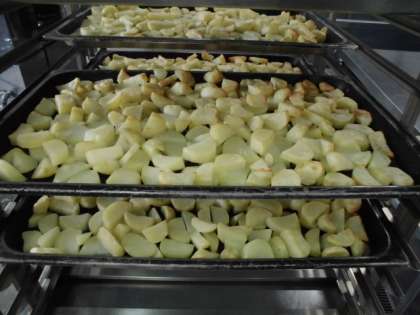 焼きじゃがは、塩と綿実油で下味をつけたじゃがいもを、焼き物機で蒸し焼きにしています。じゃがいもがホクホクしていて、じゃがいもの甘みが出ていました。