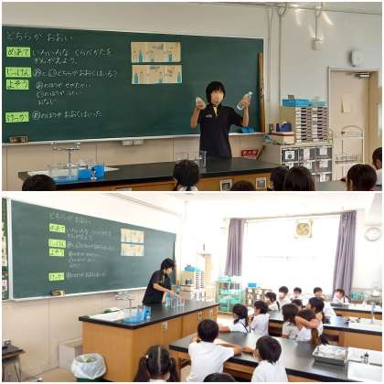 2本のペットボトルを使い、いろいろな比べ方を考えます。