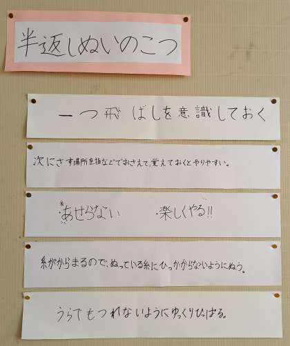 子ども達は、裁縫の基本を1つずつ身につけています。