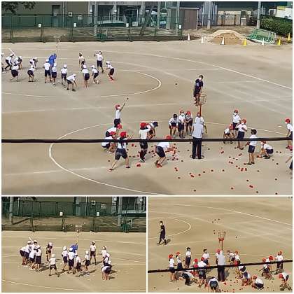 5年生が、久しぶりに体育科の学習で「玉入れ」に取り組んでいます。