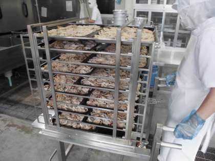 焼きれんこんは、塩と綿実油で下味をつけたれんこんを、焼き物機で蒸し焼きにしています。れんこんそのものの味を味わえる献立でした。