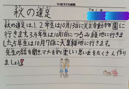 今週、水曜日は1・2年生が、天王寺動物園へ遠足に出かけます。