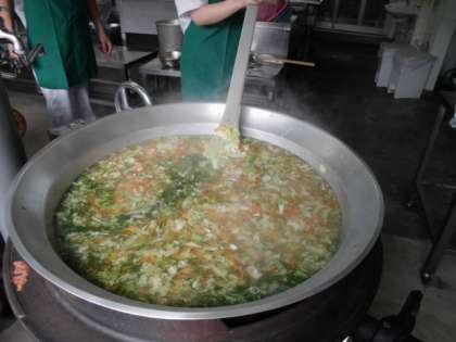 スープは、鶏肉・にんじん・キャベツ・パセリを使用したあっさりとしたスープです。