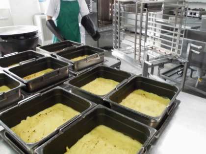 徳島県産のさつまいもを煮くずれるまで柔らかく煮て、砂糖・バター・牛乳・クリームを加え、ミニバットという容器に入れ焼き物機で焼いています。