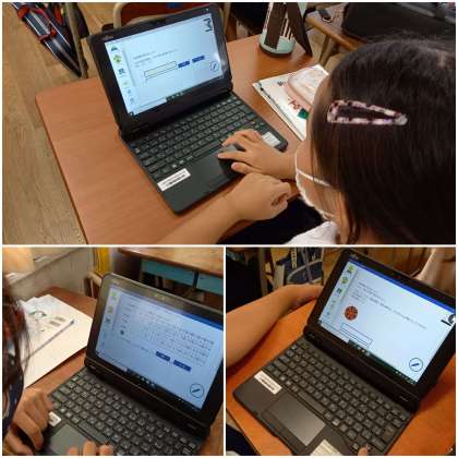タブレットドリルで、算数科の問題に取り組んでいます。