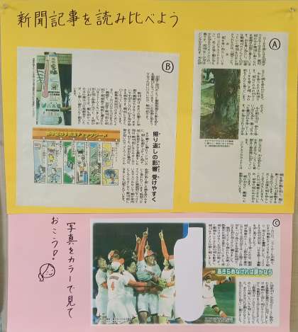 今日のめあては、「記事と写真にあった見出しを考えよう」です。