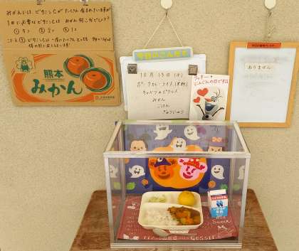 展示食の前で子ども達は思わず拍手で喜んでいました。
