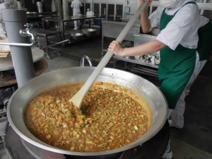 ポークカレーライスは、小麦アレルギーの児童も食べることができるように米粉のカレールウを使用しています。豚肉・にんにく・セロリ・にんじん・たまねぎ・じゃがいも・グリンピースを使用し、にんじんは星形のラッキーにんじん☆が入っていましたよ〜。